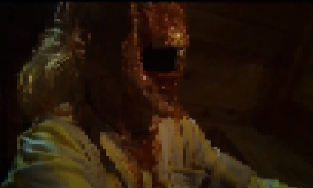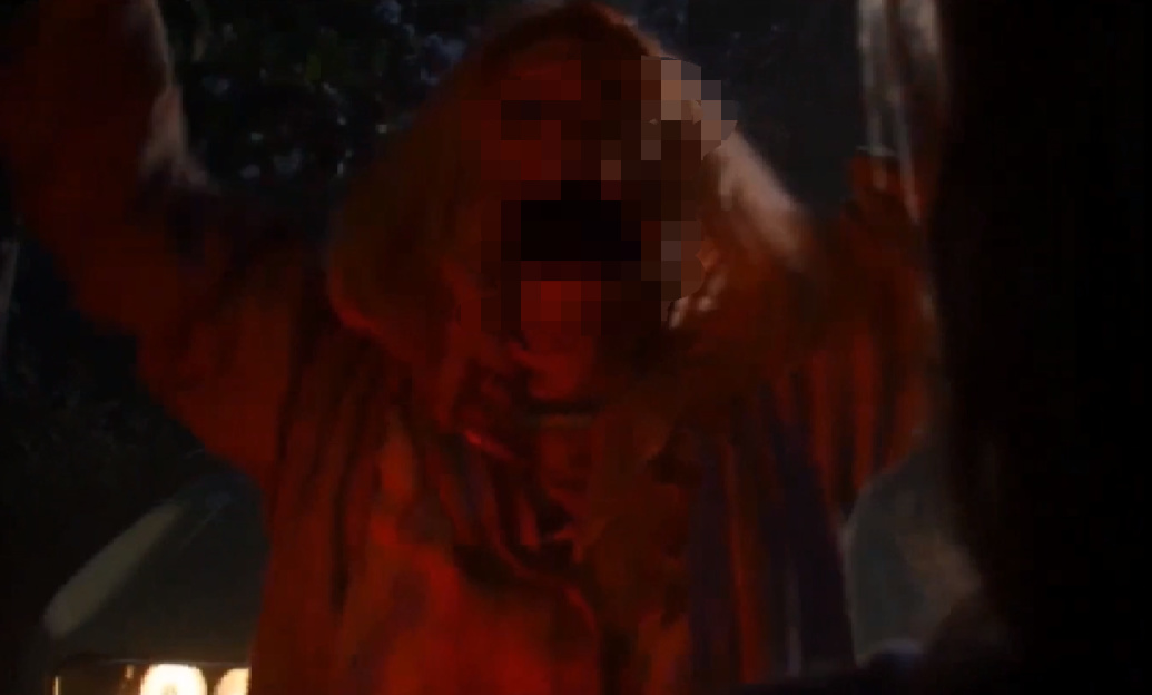 女主走近一看,金发女已经变成了披萨人,一张血肉模糊的披萨脸直接怼过来。(放心打码了)