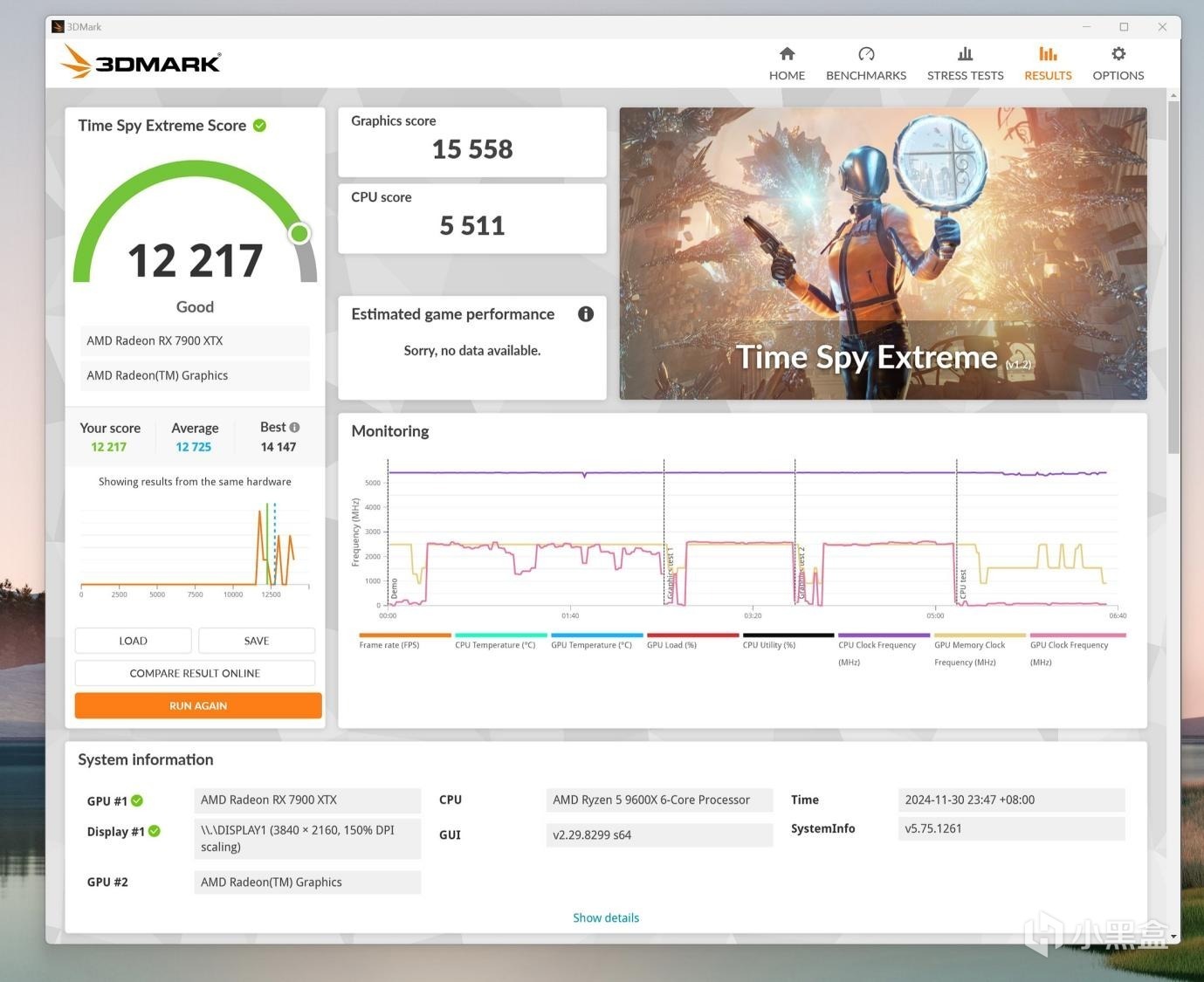 3DMARK Time Spy Extreme测试,总分12217,图形分数15558分,CPU分数5511。