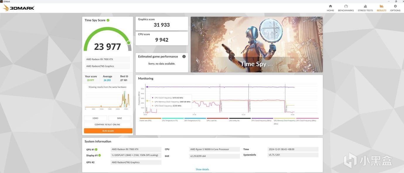 3DMARK Time Spy测试,总分23977,其中图形分数31933,CPU分数9942分。
