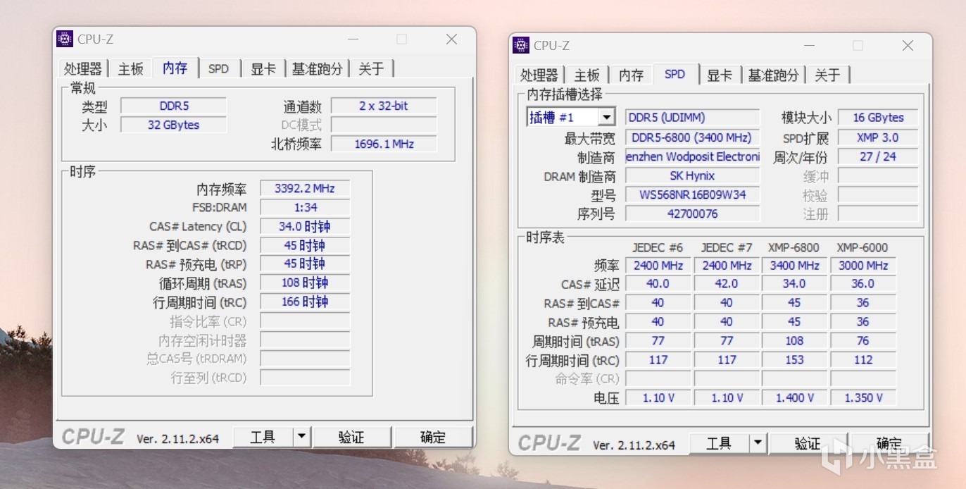 内存,DDR5 6800MHz,时序34-45-45-108,海力士A-die颗粒。
