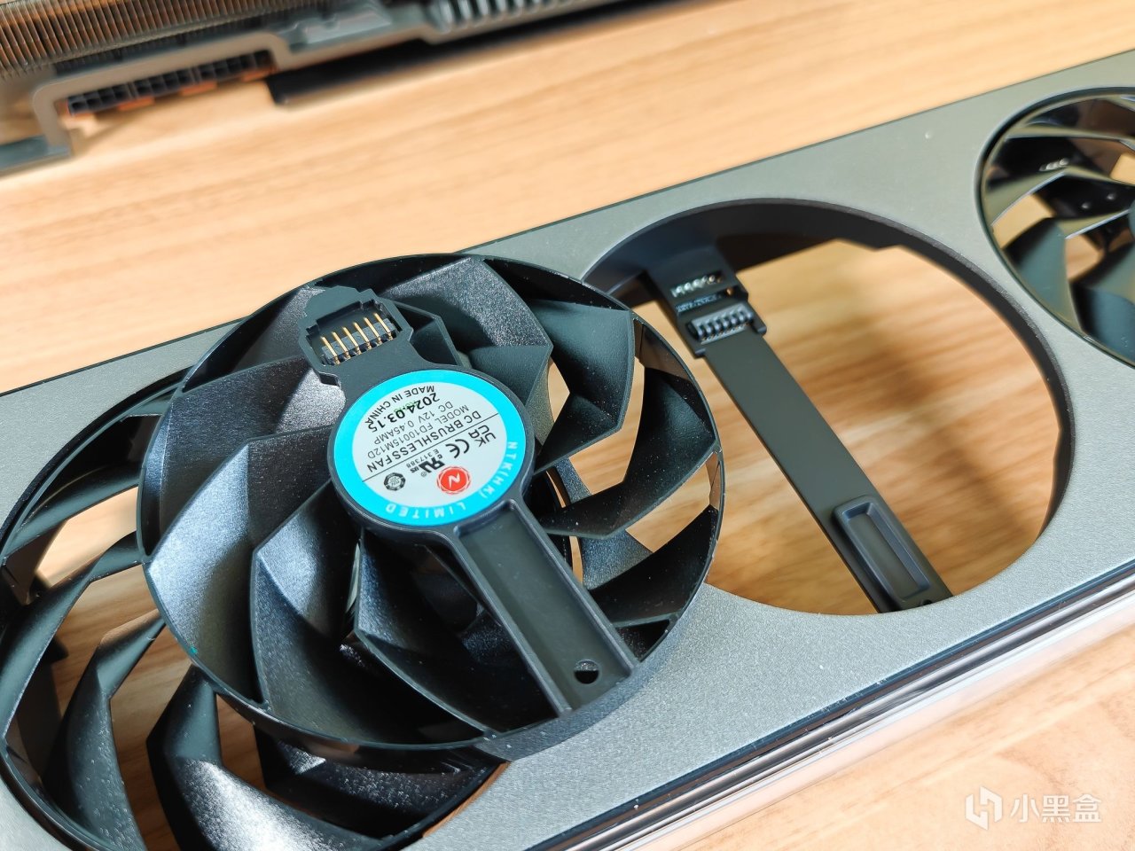 显卡风扇采用了快拆设计,仅需拧下一颗螺丝就可以将风扇取出清理。同时风扇是双滚珠轴承(Two-Ball Bearing)风扇,它的寿命比套筒轴承长约85%。同时 风扇叶片改进后,也比上一代产品安静了10%。