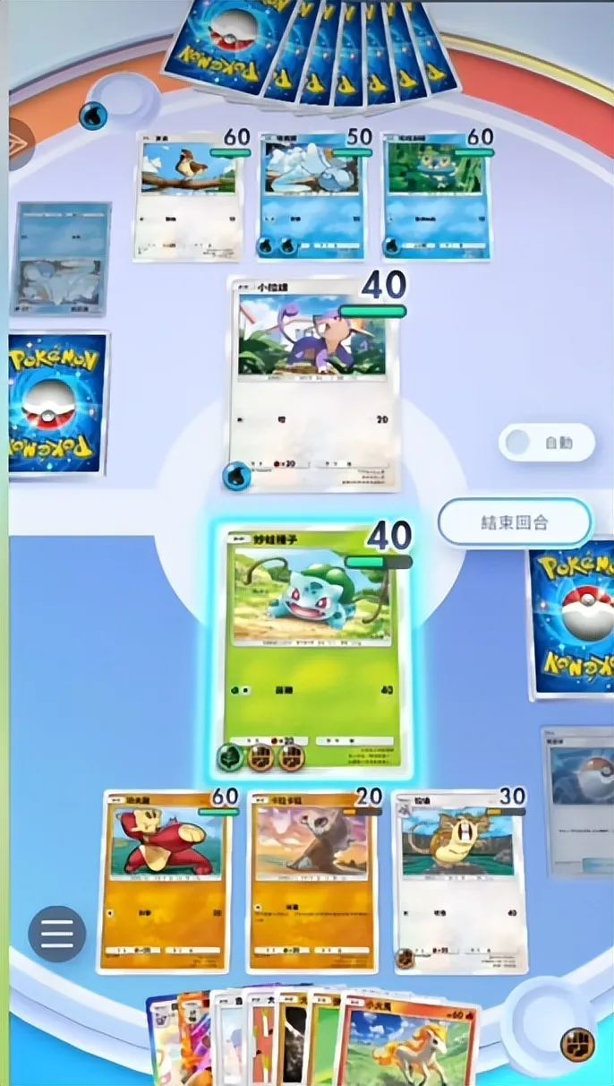 而在对战玩法方面,游戏也做出了非常多的优化。比如卡组数量方面,实体版需要60张卡牌,而手游版卡组20张就可以了。还有像是能量卡机制,在实体卡中能量卡非常重要,宝可梦需要能量卡才能释放招式。但在手游版这个机制被去掉了,改为每个回合自动生成一点能量,用来放技能。