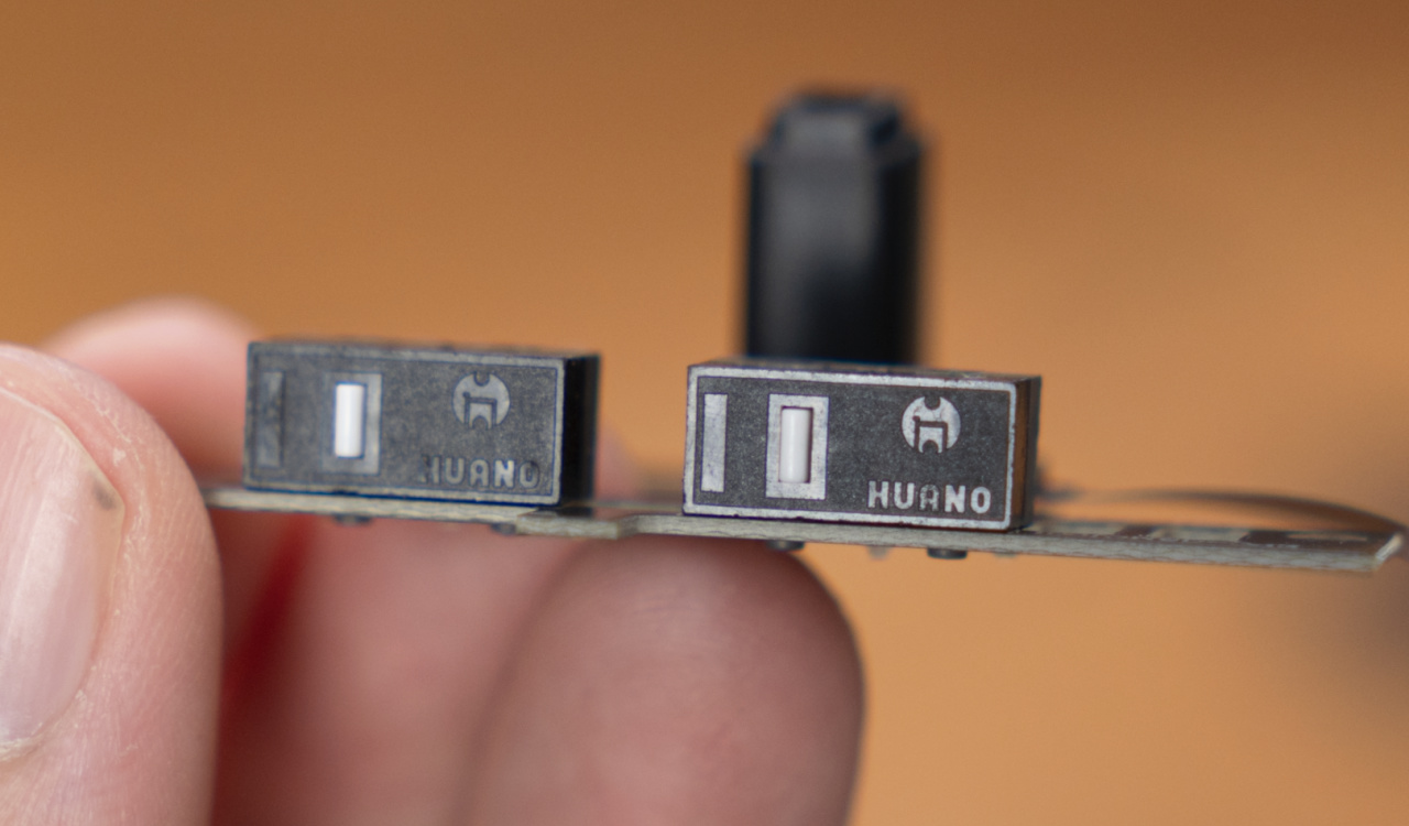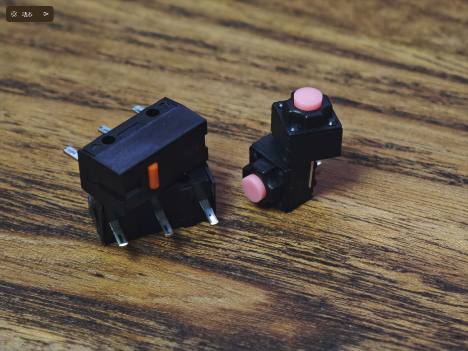 原裝的微動是華諾藍透粉,包裝盒內送了兩副額外微動,分別是一對靜音微動,和另外一對歐姆龍紅點。