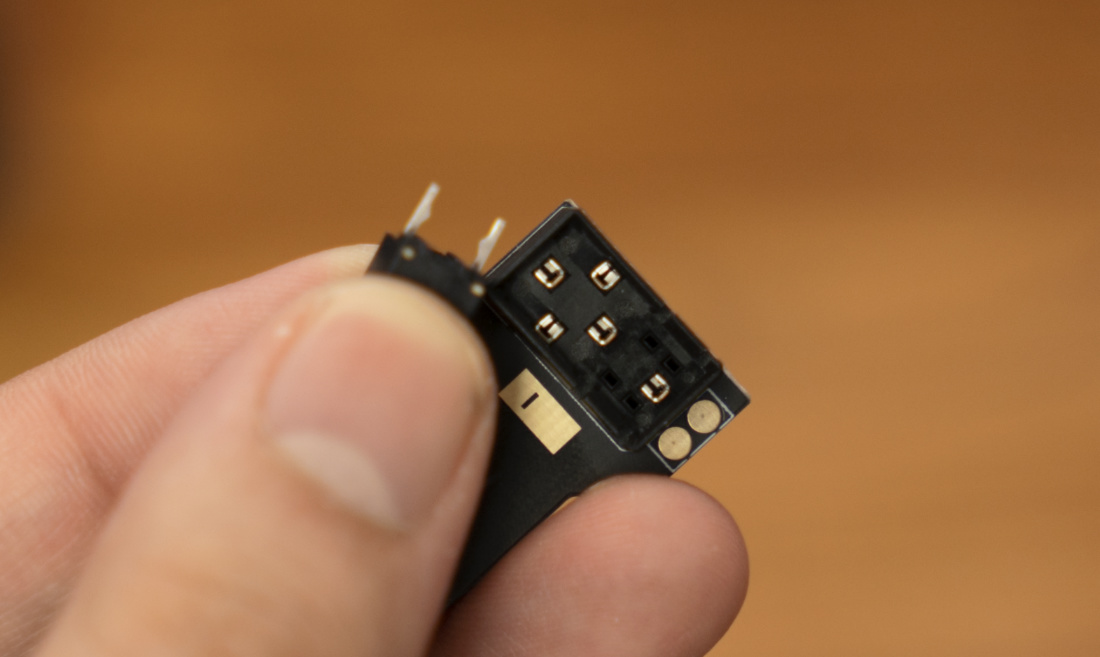 鼠標底部蓋板下就是鼠標的熱插拔微動小版。微動小板和PCB是通過觸點相連,且觸點是一定的彈性設計,也就是說無論微動是高是低,他都可以進行一定範圍呢的適配。