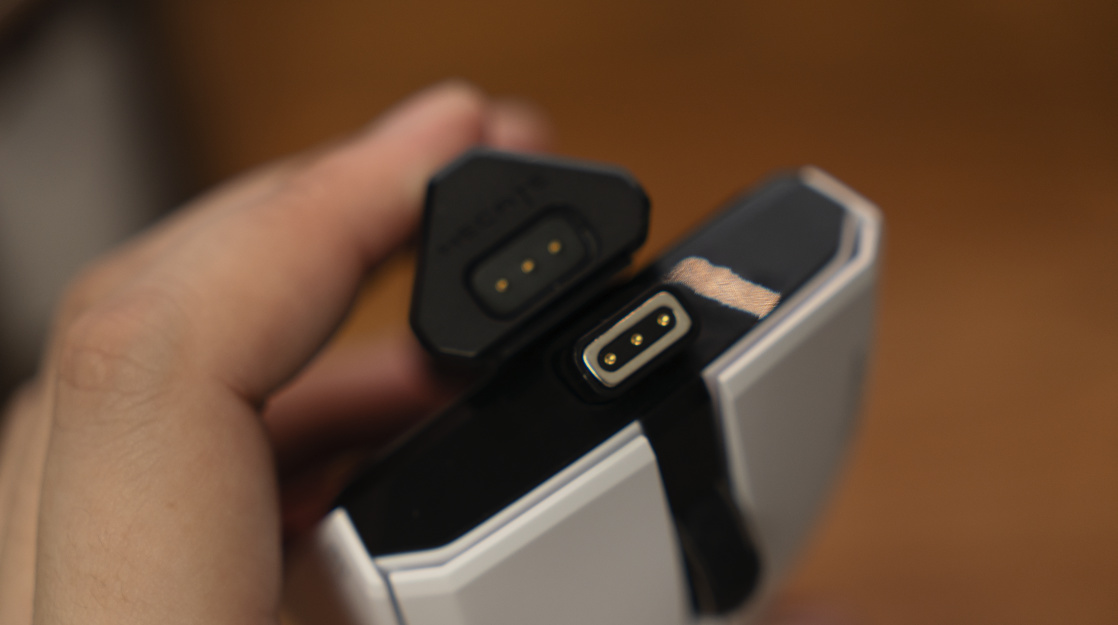 而且他還做了一個非常好用的磁吸充電。把磁吸充電觸點和4Khz接收器結合在一起,每次玩完之後只要稍稍對準就能自動吸附充電。
