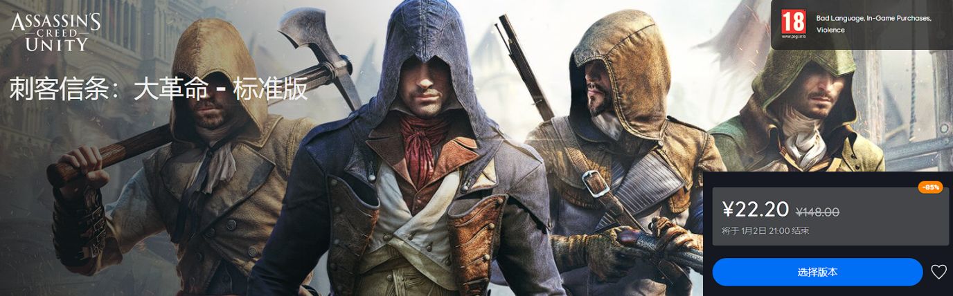 《刺客信条:大革命》是由育碧公司研发的一款动作冒险类游戏,其 DLC 不影响游戏体验,所以大家不必担心可以直接入手标准版: