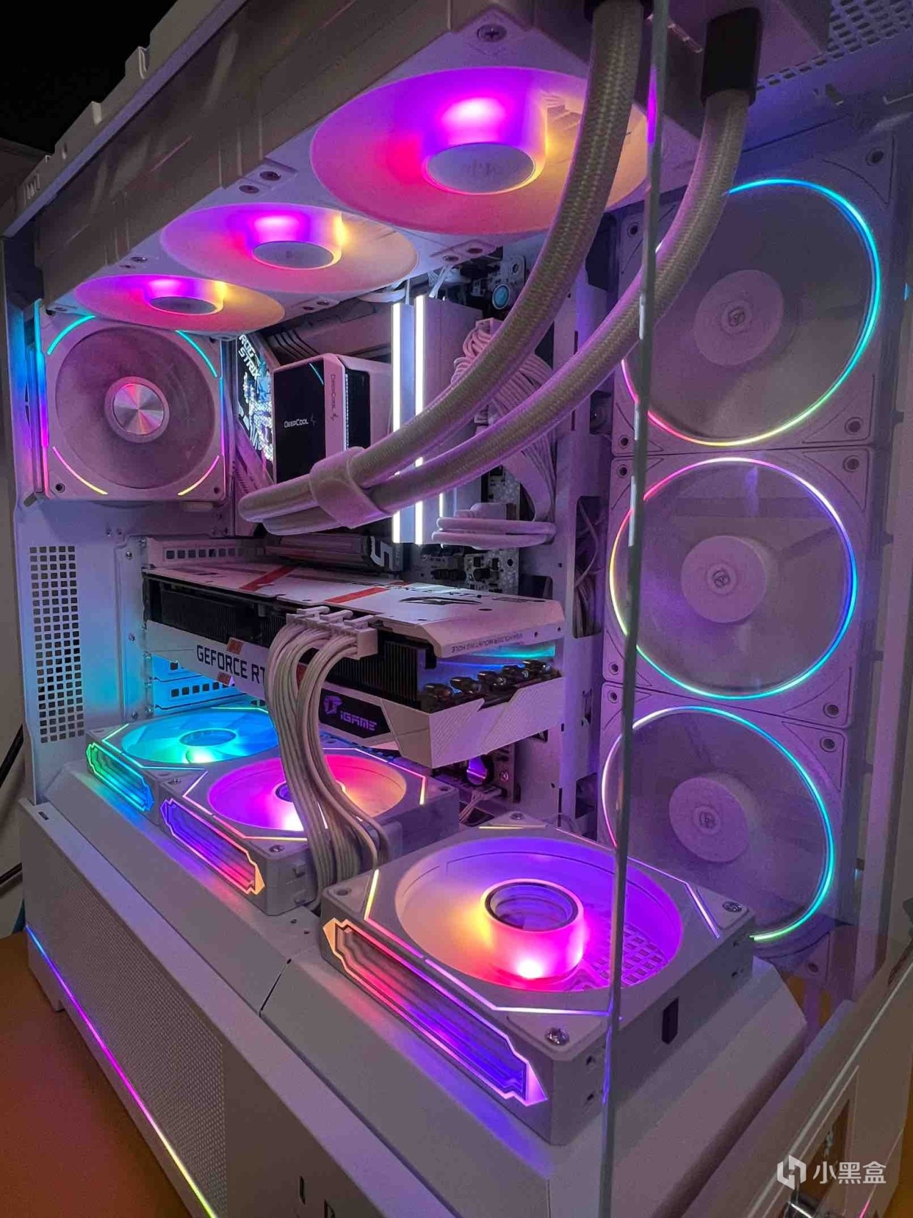 我入手的D58AIR机箱最多可以安装10个风扇(含水冷),我这次也全都装满了。背部的一把风扇是机箱里标配的,有一个小屏幕可以看到转速。