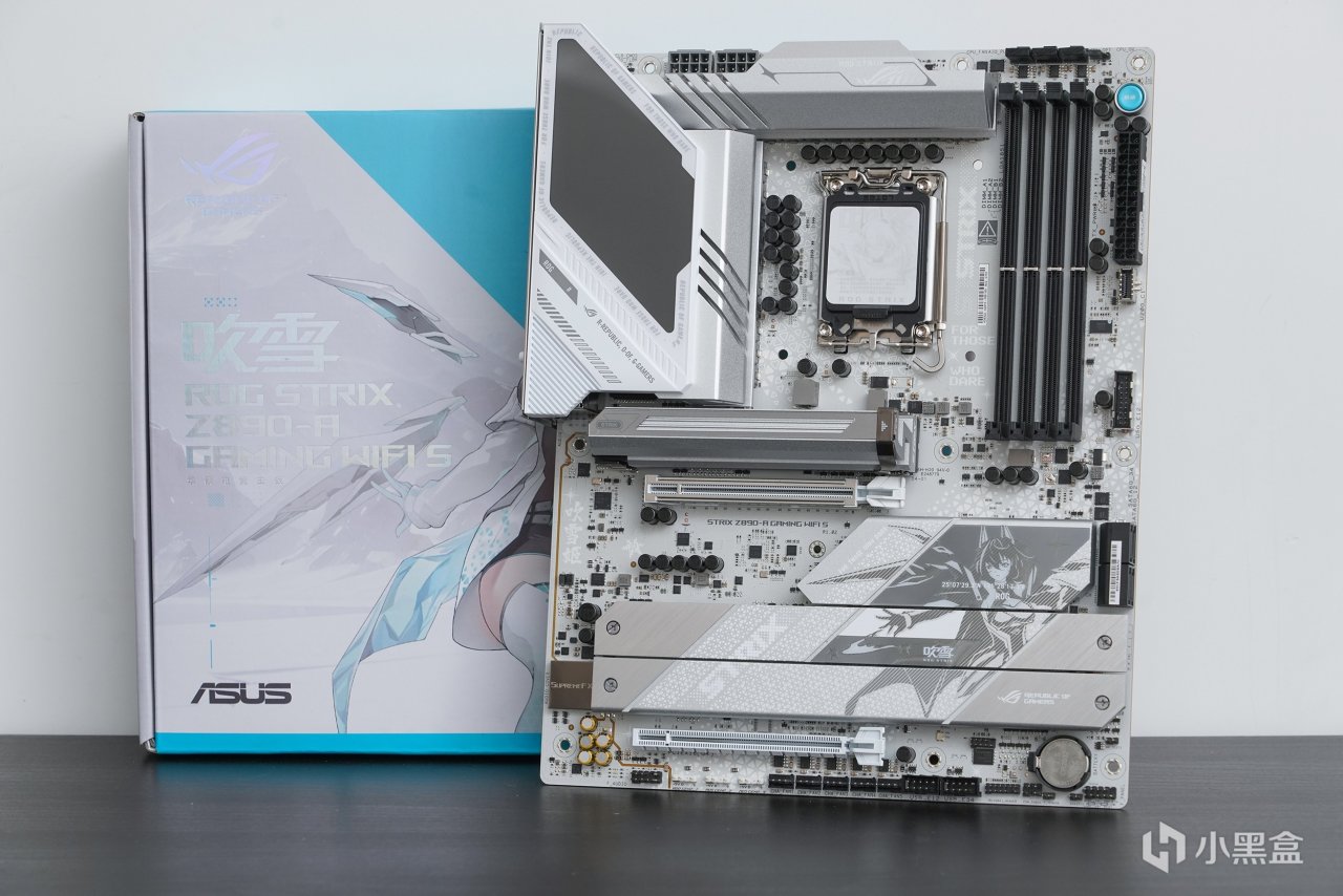 接下来就是主板,这次我想给自己组装一台全白的机箱,更好看而且落灰也不明显,不用经常擦拭。考虑到U7的昂贵售价,一步到位给它找一个高端的家---ROG的Z890吹雪WiFi S。主板采用了16+1+2+2供电模组,给硬件提供稳定的能量输入。