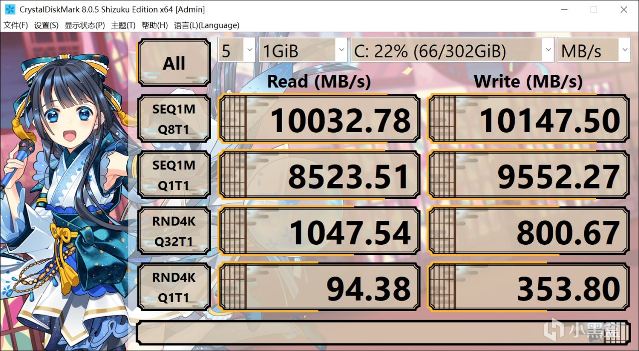 在CrystalDiskMark中,这块540硬盘的读写均达到了宣称的10Gb/s。和PCIe4.0的硬盘相比,5.0在进入游戏和读取进度时表现会更快一些。