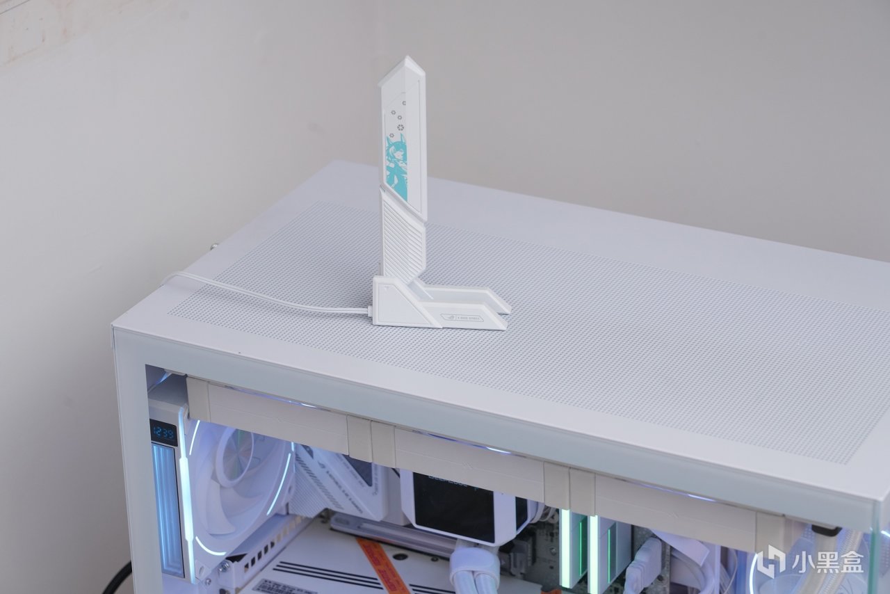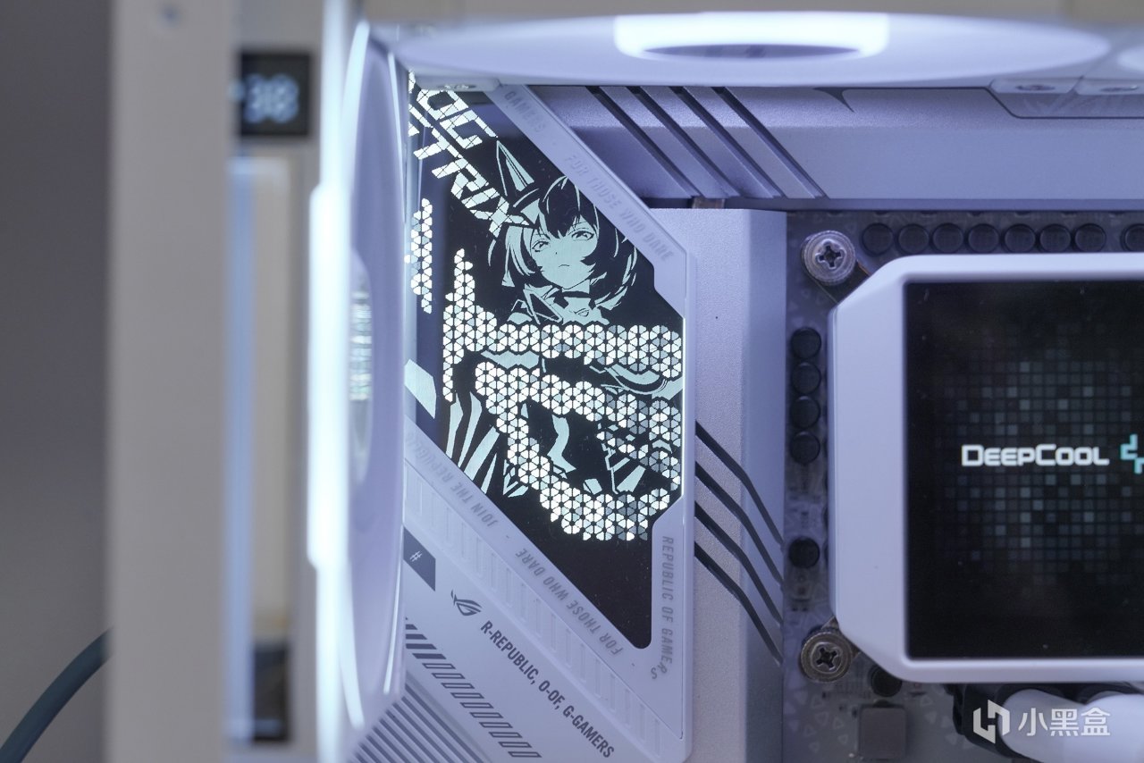 ROG Z890吹雪S主板的左上方是吹雪姬的发光部件,支持AURA SYNC神光同步,还可以实现关机亮灯功能。
