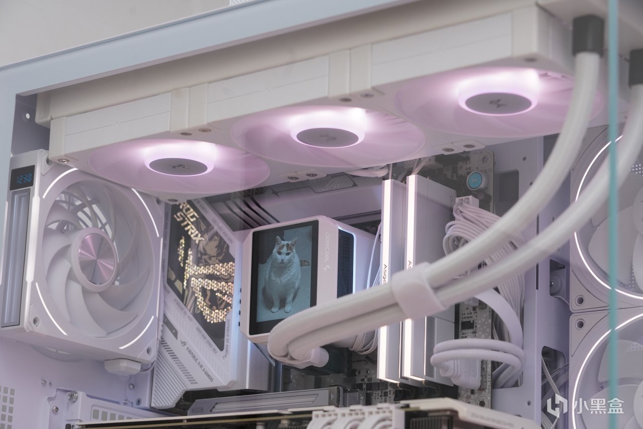 这款冰暴水冷除了白色的外观,散热头上的2.8寸LCD屏幕也是吸引我的最大卖点之一,我可以把我的小猫在上面播放,时刻欣赏它。