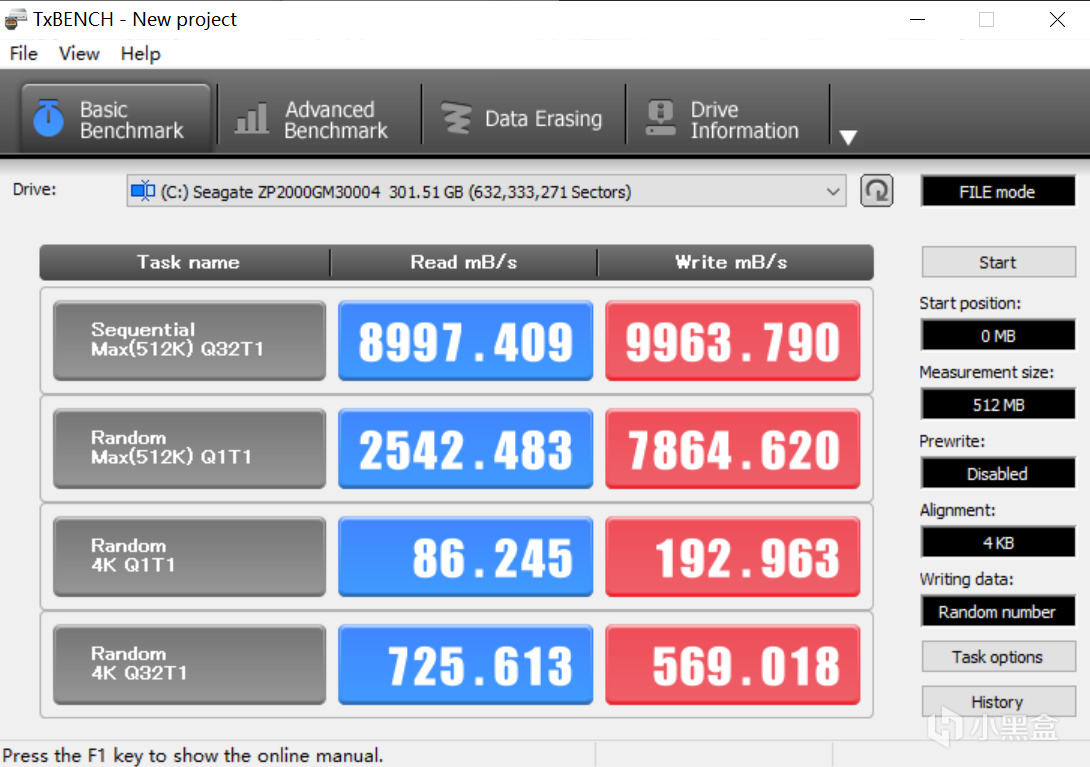Tx BENCH里,写入速度同样可以达到10Gb/s。这块硬盘的散热表现也不错,搭配上主板巨大的散热装甲,在多次连续跑分后,温度也不超过60度。