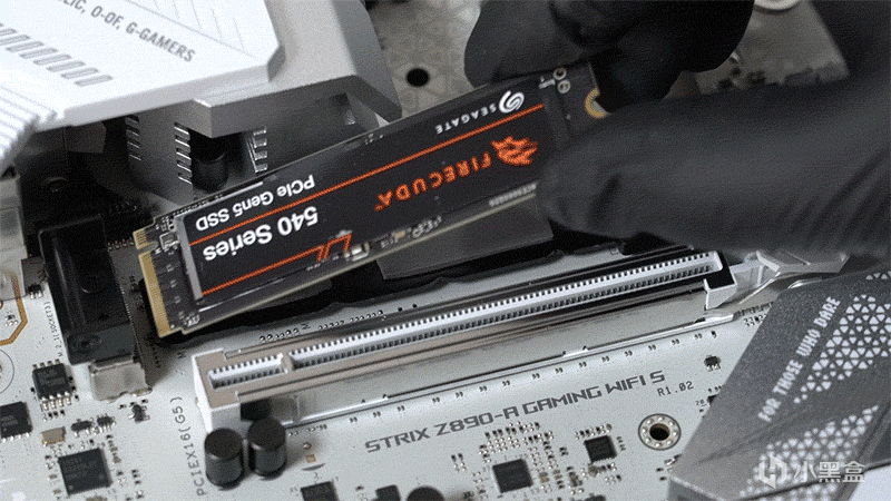 值得一提的是,ROG Z890吹雪S主板上的5个M.2插槽均支持快装快拆技术,安装和取出均无需使用任何工具(取下PCIe4.0的散热马甲还是需要螺丝刀的)。5.0接口的快装如下面动图,操作非常简单快速。