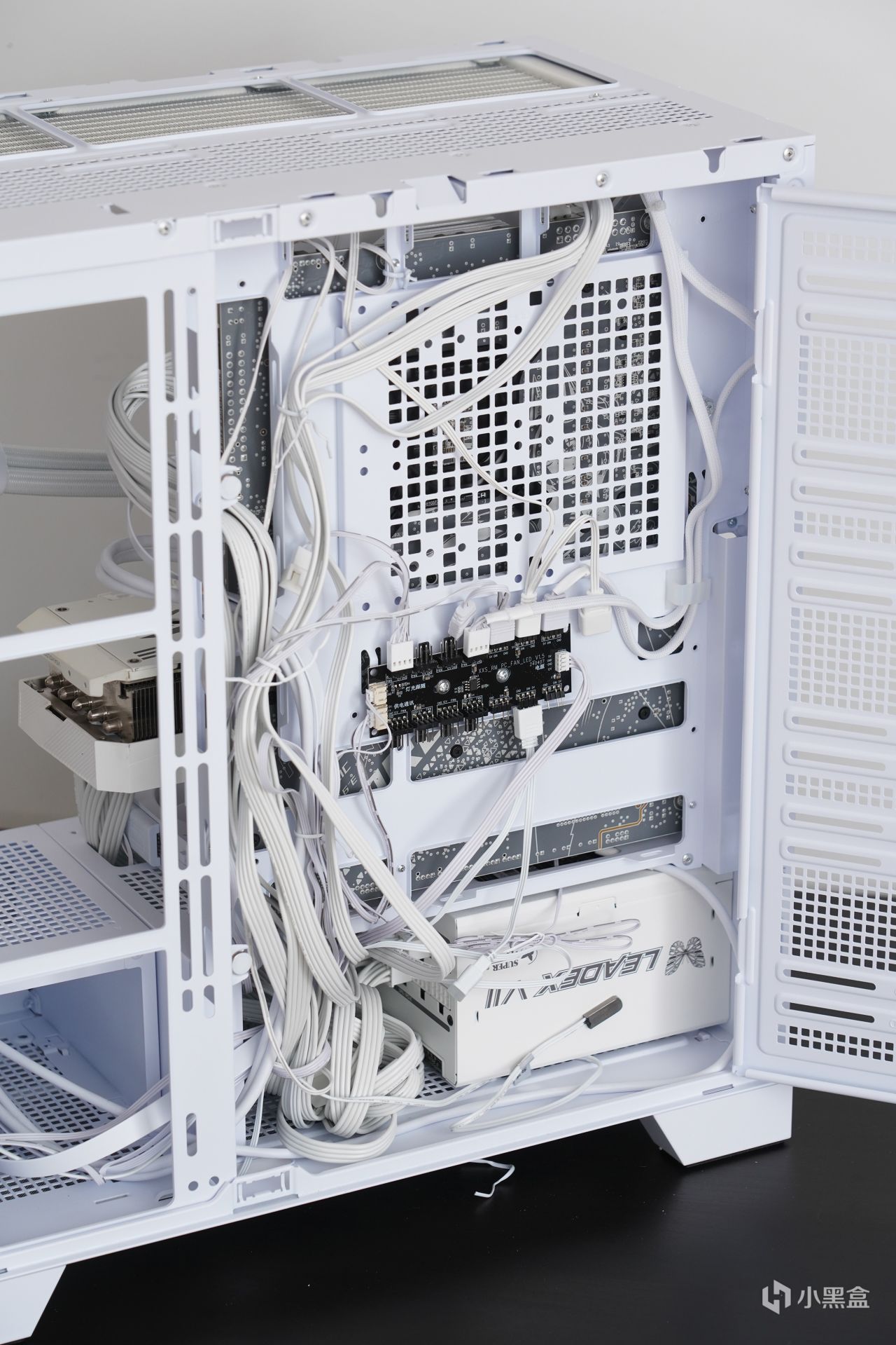 这个“门”还有一个妙用:机箱背部的线缆不好整理,我们只需要把线缆都关在门里面,立刻就整整齐齐了。