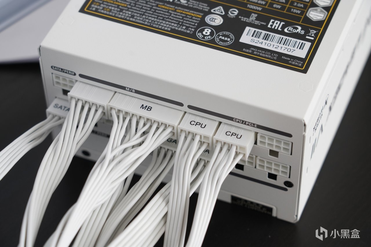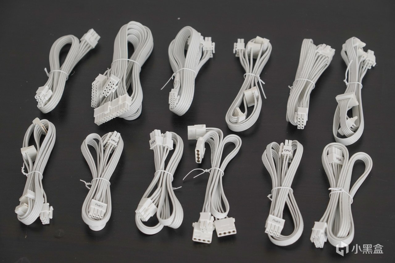 标配了非常全面的线缆,除了2个CPU线、4个PCIE显卡线、3个SATA线和1个大4PIN线外,还有一个给40、50系显卡供电的PCIE GEN5的16PIN线,支持600W的显卡。目前4090最高功率在450W左右,600W足够满足5090使用了。