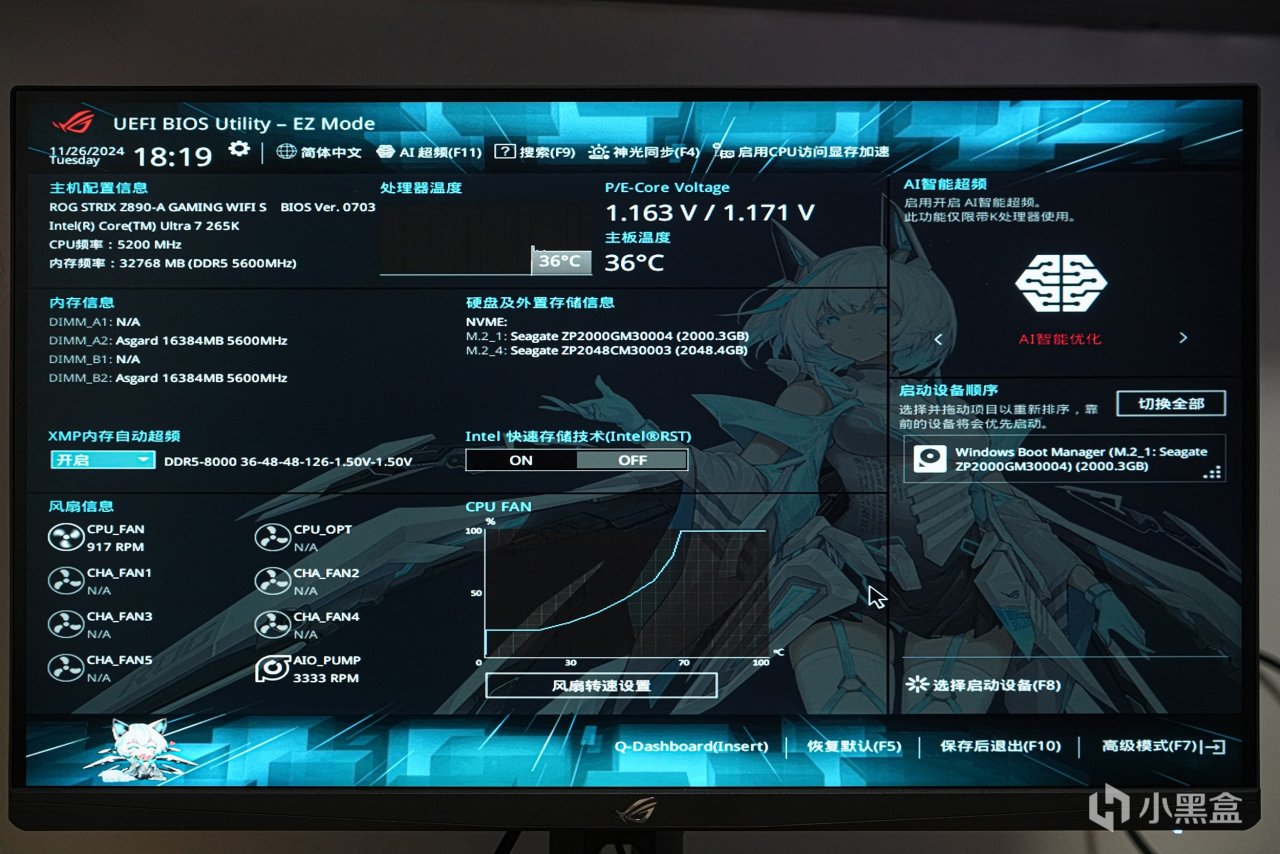 ROG Z890吹雪S主板的AI智能超频和XMP功能,也能给玩家带来性能上的一定提升。开启方法很简单,在BIOS里只需一键即可开启XMP内存自动超频和AI智能超频,跑个分对比看看吧!