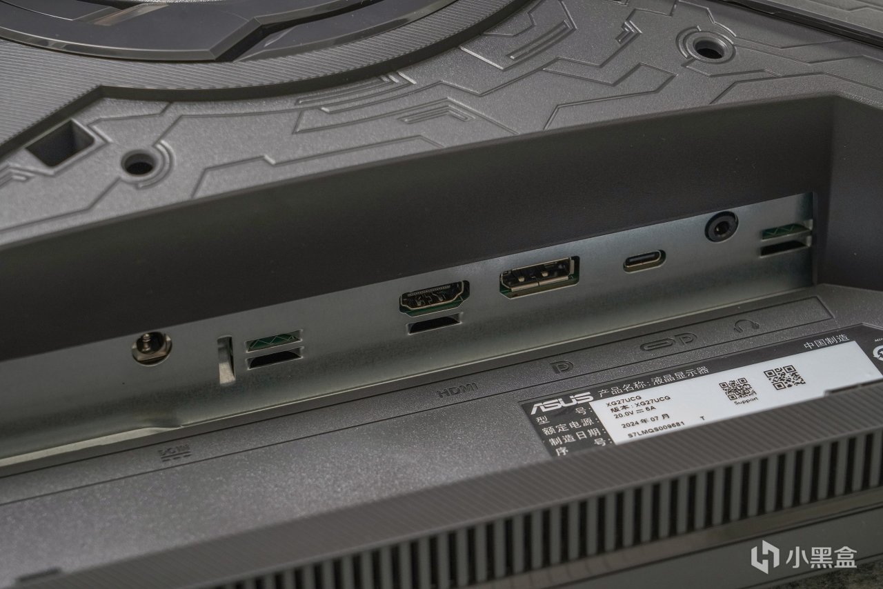 绝神27Pro背面配置了一个满血的HDMI2.1和一个DP1.4接口,旁边还有一个C口可以用来扩展笔记本的屏幕,让这台电竞显示器在生活向的场景中用处更多。