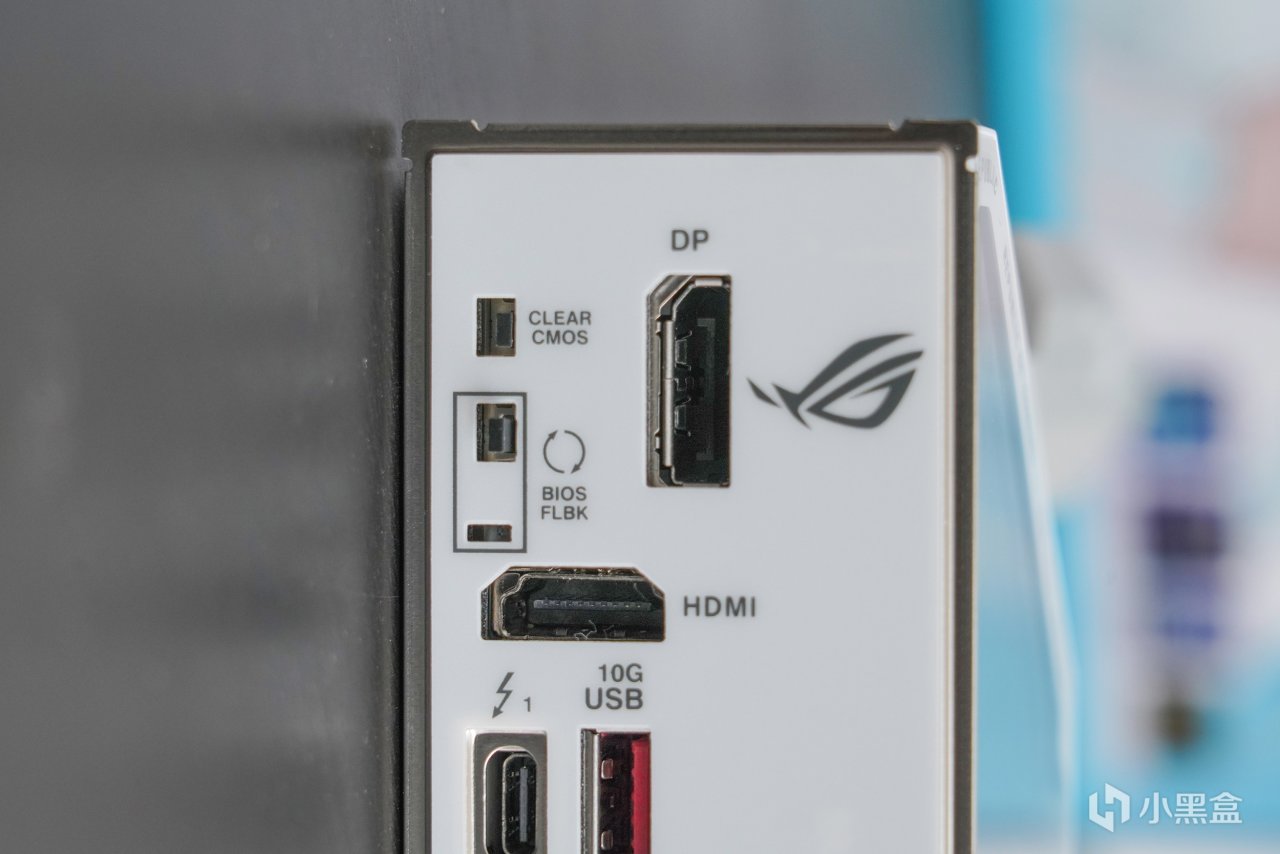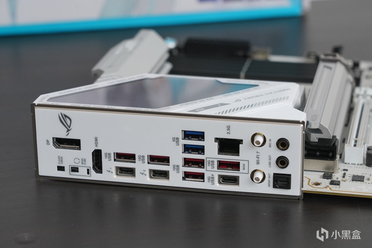 ROG Z890吹雪S的主板顶部,还配有给超频发烧友预留的CMOS清除,以及更新BIOS的FlashBack按钮(无CPU刷新)。