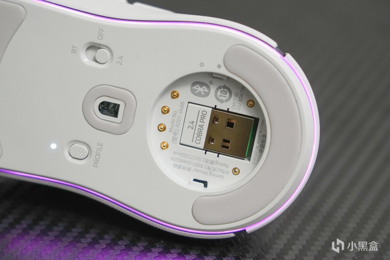 眼镜蛇专业版是三模鼠标,支持有线、无线以及蓝牙三种连接方式。还支持雷蛇底座的无线充电功能,通过更换雷蛇的无线充电底部模块,这枚鼠标还可以使用其他的无线充电设备。