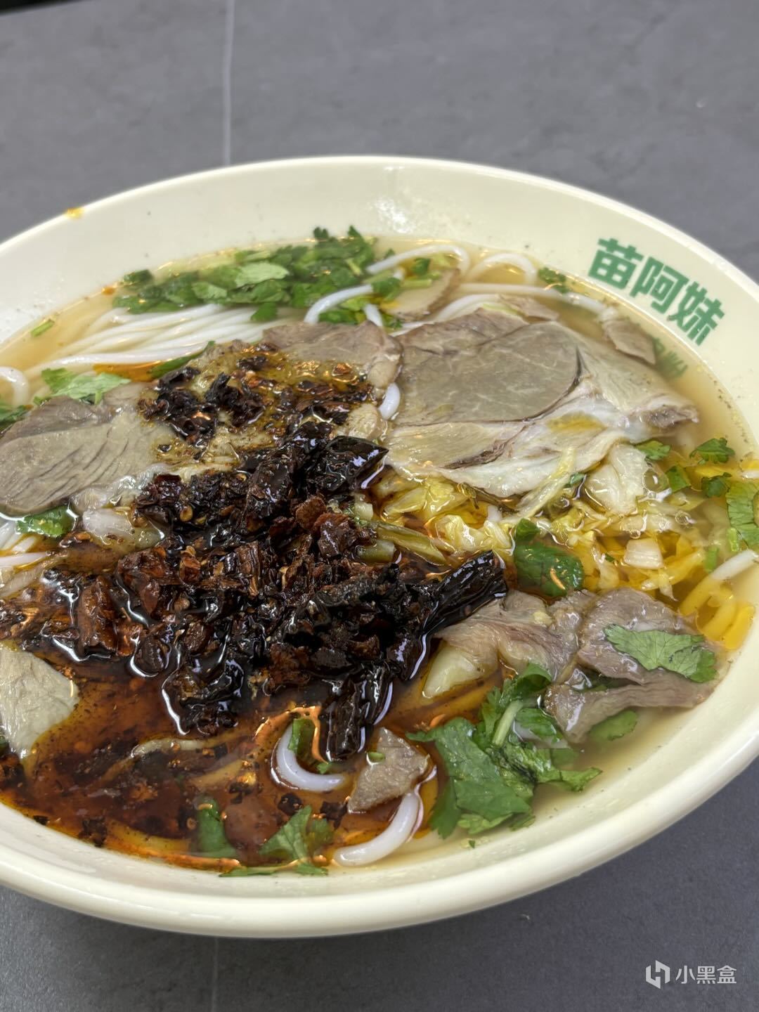 湯特別好喝,比較清淡的類型,喫不飽可以加粉,沒胃口喫飯的話很值得試一試,我記得湯裏有薄荷來着,和在雲南喫的黃牛肉米線有點像。