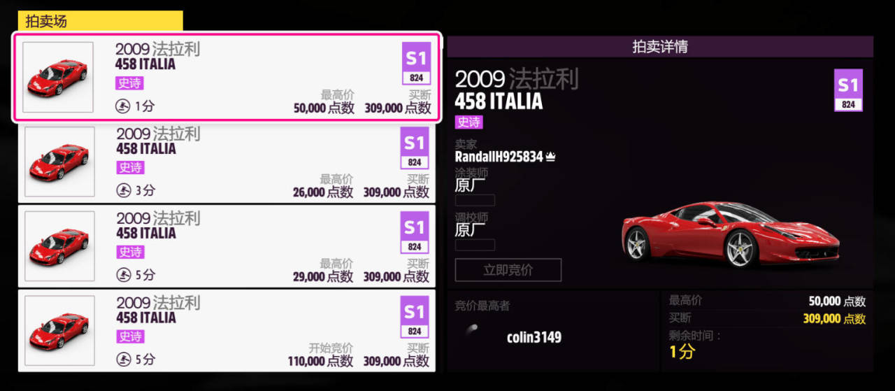 獎勵車輛爲:2019款法拉利 458 ITALIA