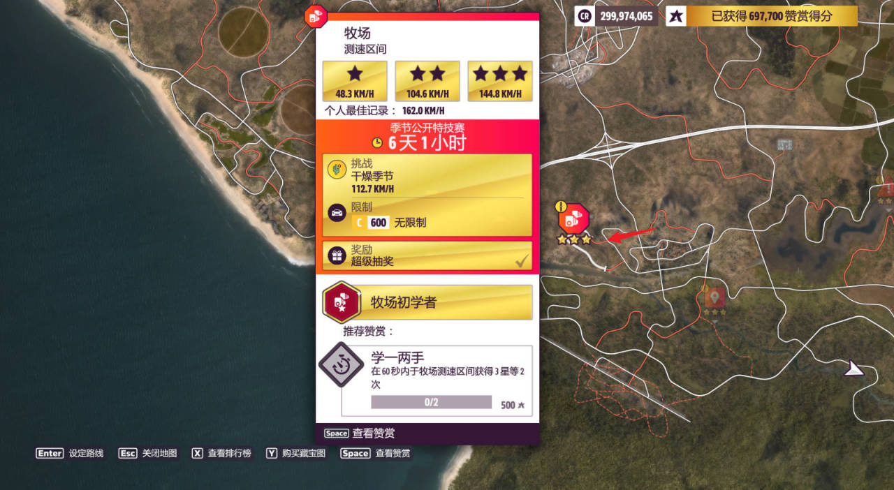 測速區間:牧場,完成獎勵爲超級抽獎。(建議從上面入口出發,區間後段有較直及下坡路段方便加速)