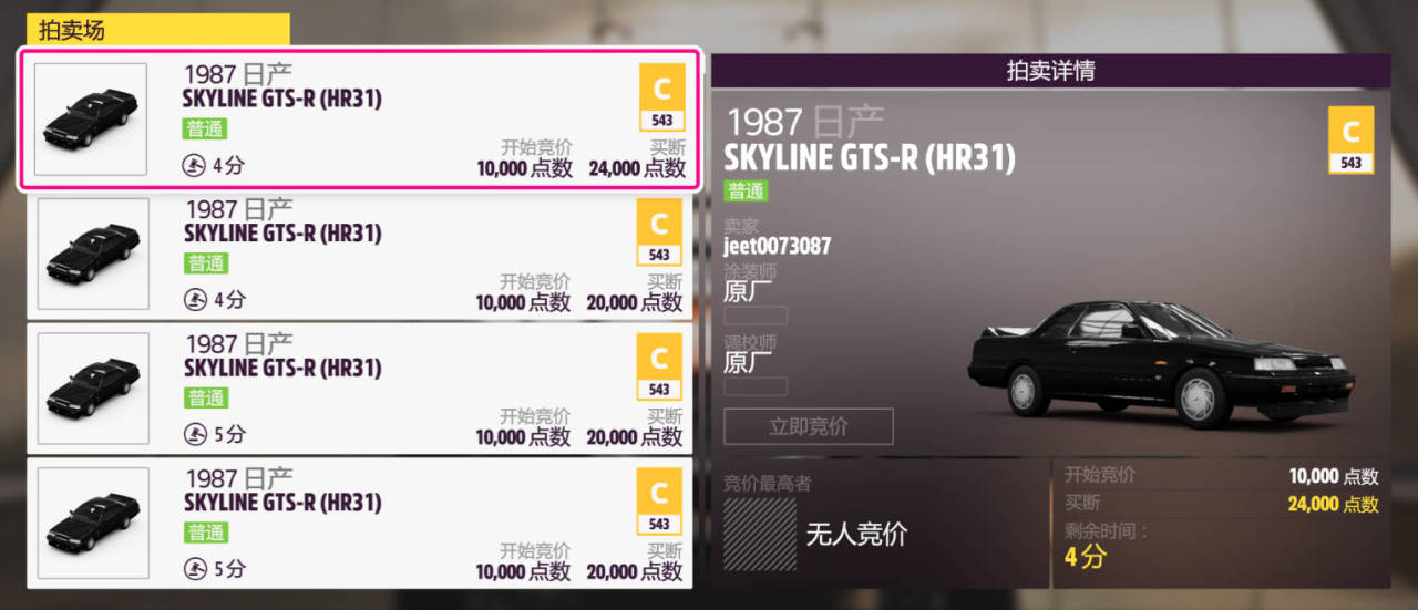 獎勵車輛爲:1987款日產 SKYLINE GTS-R(HR31)