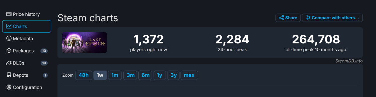 同时也远远甩开了暗黑类游戏《最后纪元》,后者Steam在线峰值26.4万