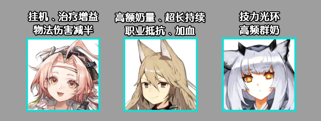 此前多数干员的天赋都具有“治疗量提升”的效果,例如临光、夜莺、苏苏洛、刺玫,一部分模组特性也具有此类效果,搭配使用奶量提升明显,注意瑰盐天赋不对Mon3tr这类召唤物生效