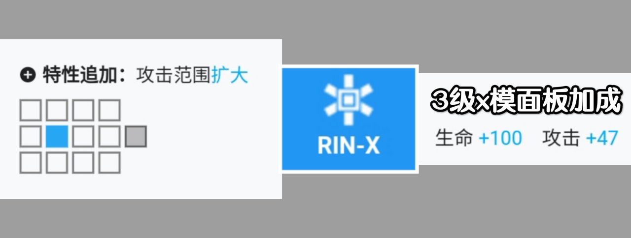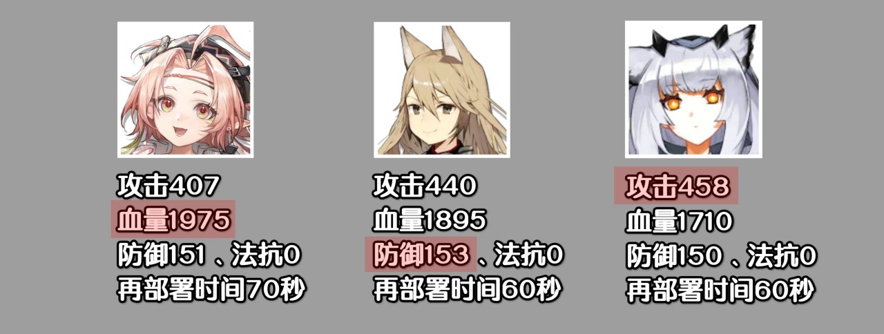 这三位获得的都是x模,特性使其增加正前方第3格,治疗距离更远,多加的1格对白面鸮这种范围内技力光环效果提升的天赋很有用,3级x模的面板加成也都一模一样