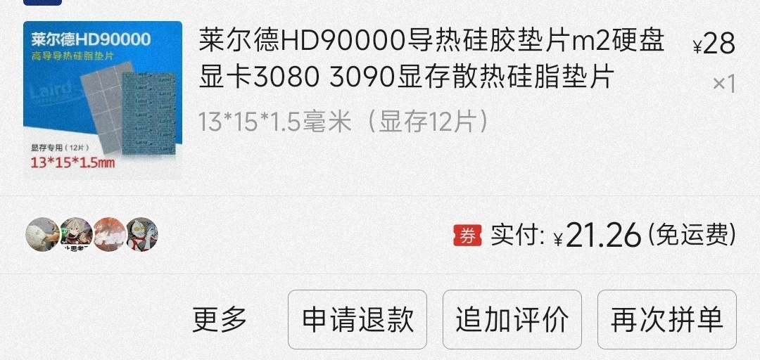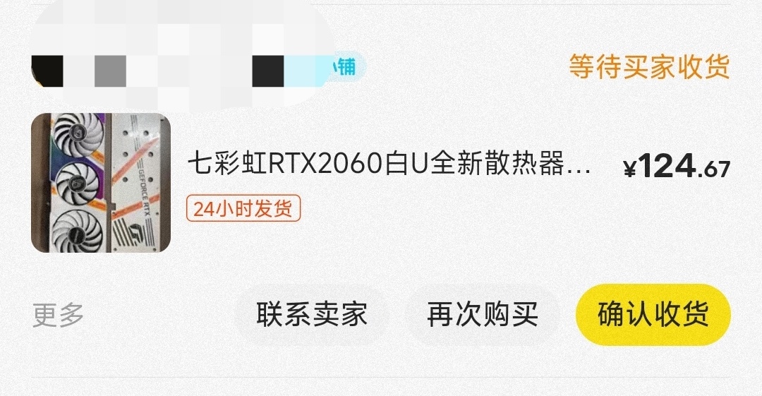 直至這兩週逛海鮮市場,刷到七彩虹rtx2060白u散熱器的孔距和戰斧是一致的,毫不猶豫的就下單了。花費124.67。