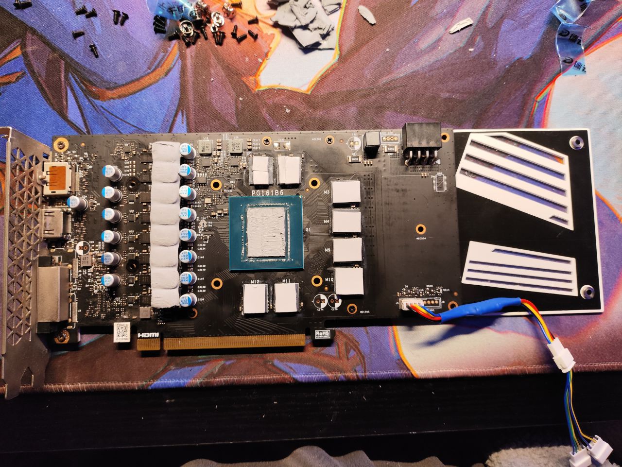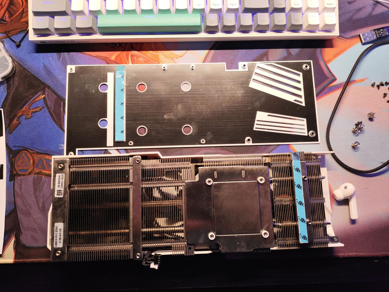 到手後第一時間就對顯卡進行了拆解和比對,發現所有的孔距和螺絲的對位都能夠契合上,隨後拆掉戰斧原來的散熱器。