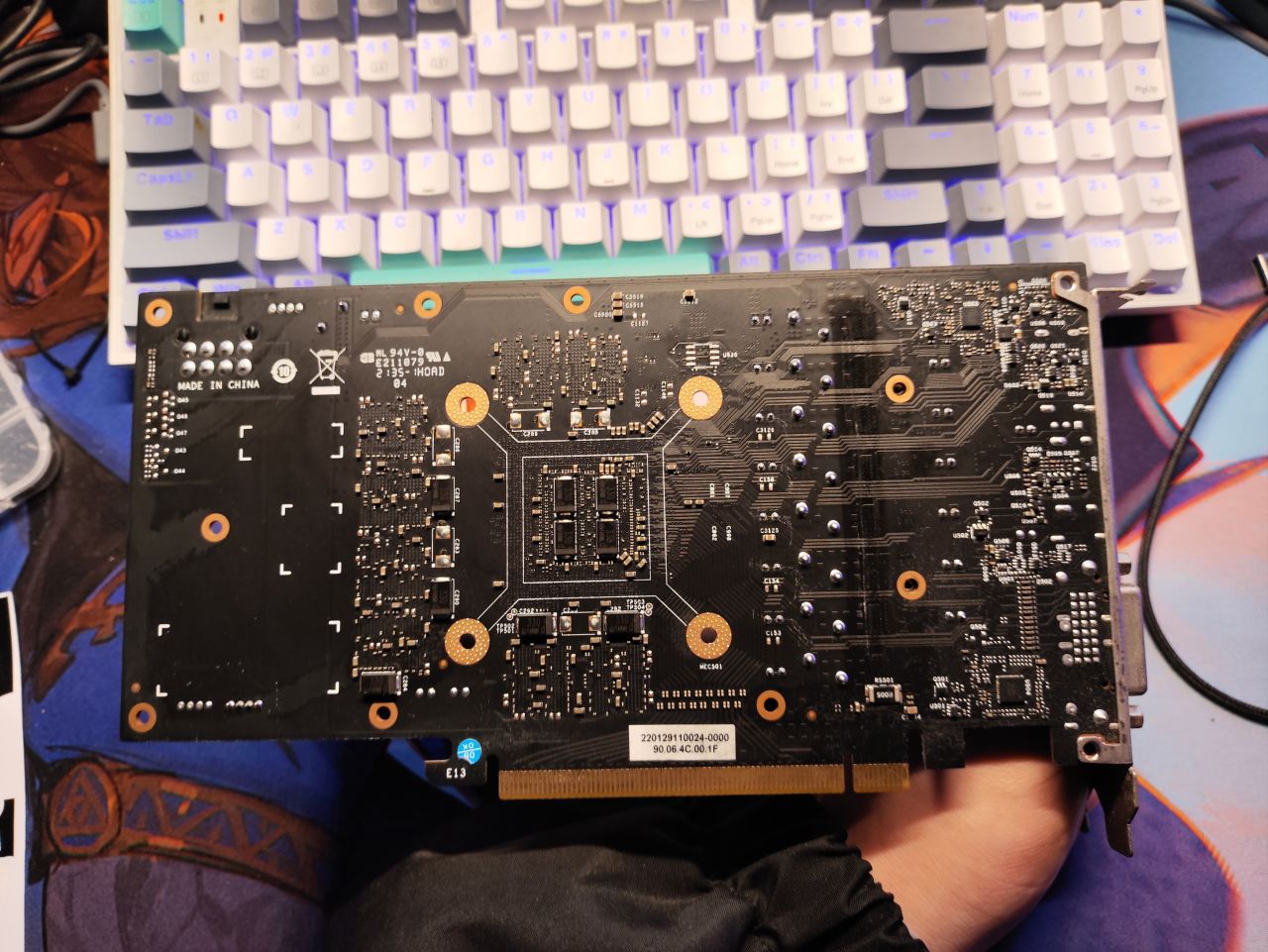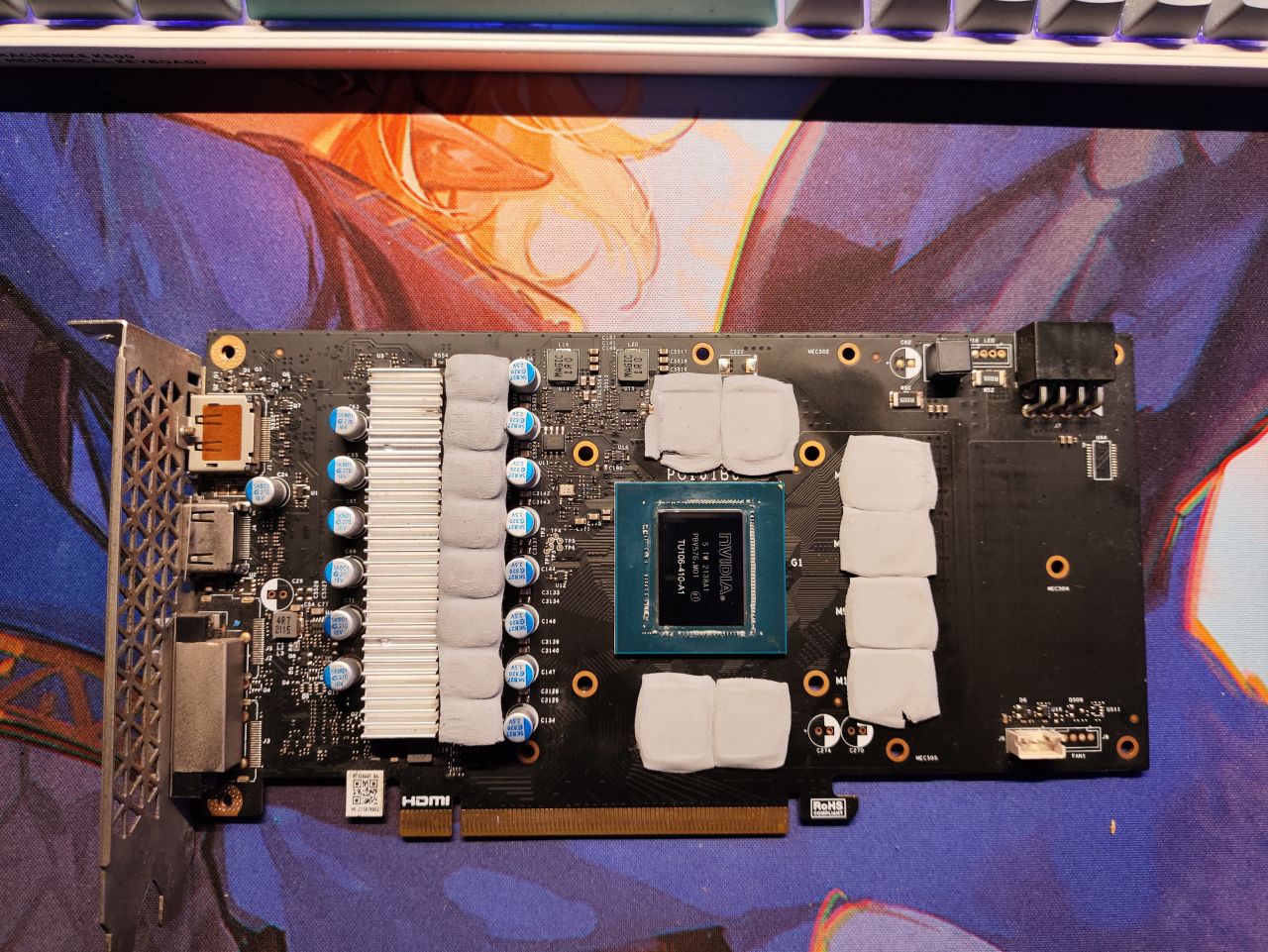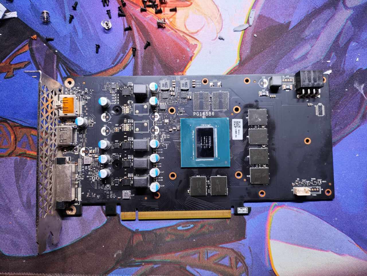 後面又發現了一個有意思的事情,我還有一張nas上作爲硬解4k的1660顯卡,同樣是戰斧系列,拆開散熱器後發現,10系和20系用的是同一款的pcb,規格和參數基本一致。