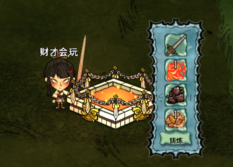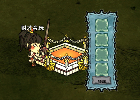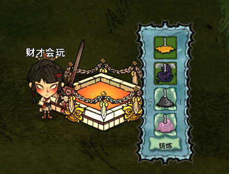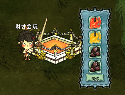 祭炼炉:用于炼制李令仪的丹药和专属剑类武器,左键靠近打开有四个格子,格子内物品不可叠加;若放入错误的配方,炼制完成后,采收仅得到一个灰烬,炼制材料不会返还。