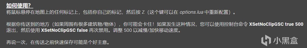 此MOD允許你在地圖圖標與個人標點位置進行快速移動。注:此爲UE4SS MOD而不是.PAK MOD,因此你需要安裝UE4SS作爲前置才能正常使用。(請謹慎使用此MOD,它不僅會與很多MOD衝突,且容易使遊戲崩潰,如果你決定使用它請前往鏈接去仔細查看作者的各種提示與問題解決方法!!不然就算你安上此MOD也會導致閃退、崩潰、衝突、壞檔!)