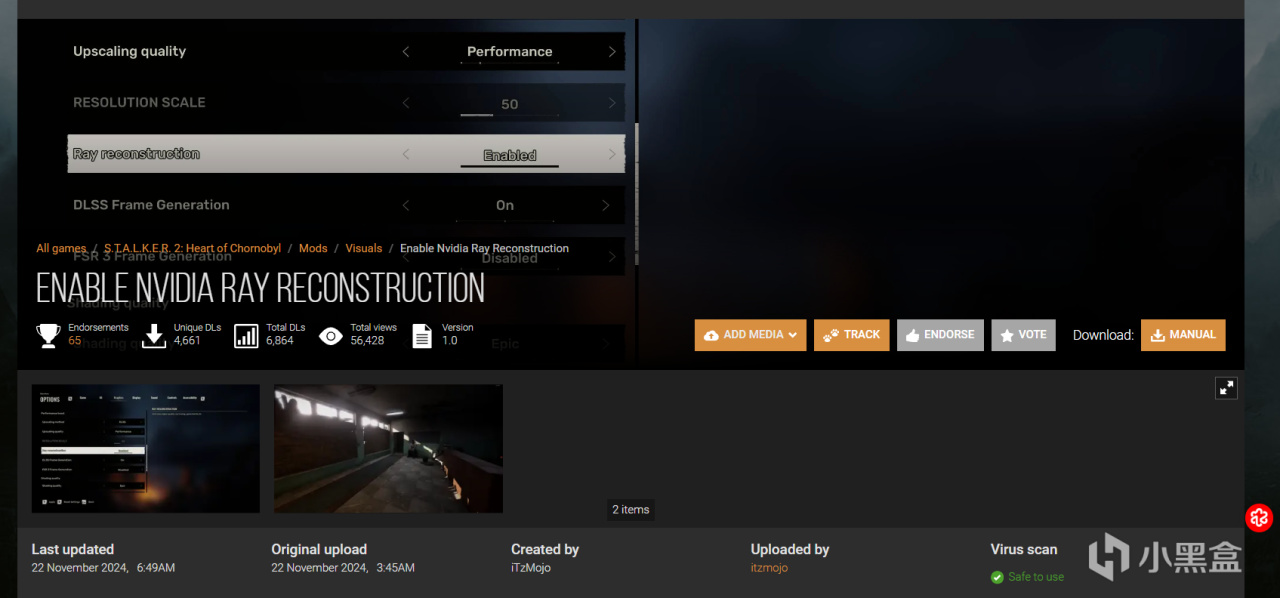 通過調用遊戲文件啓用了光線重構,你現在能在選項裏啓用它。此爲DLSS3.5的光線重構技術,在提升畫面的同時也會降低你的性能,非高配電腦請謹慎選擇。(該MOD是從遊戲文件裏調用出此選項,說明官方以後的更新會啓用此功能,現在沒有可能是還沒處理好,就和A-life一樣)