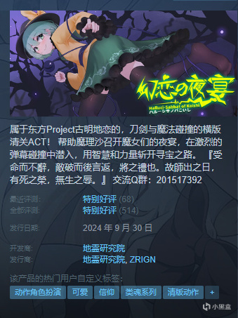 我们制作的东方同人类魂动作游戏《幻恋夜宴》的评测数到达514个啦!