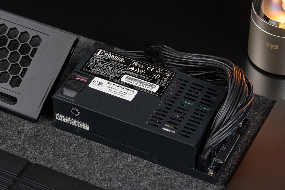 首先先來看本次裝機的核心,機箱正面一側爲顯卡與電源的位置,採用與之綁定的華碩4060lp顯卡而設計,右側爲蜂窩網格下則爲1U電源的安裝位置。