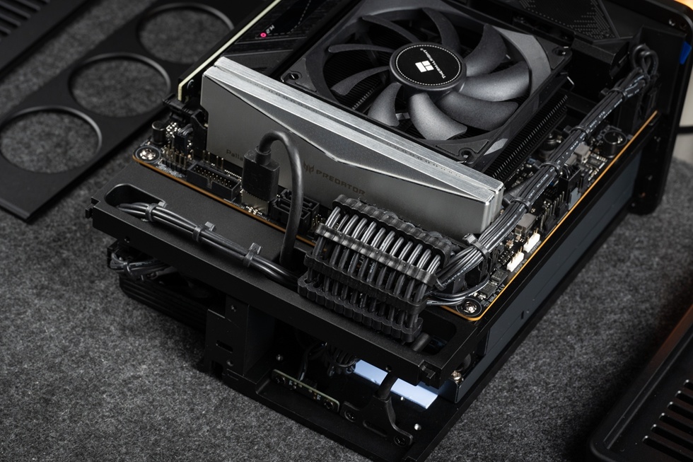 先把散熱器,固態硬盤等都裝在主板上面。