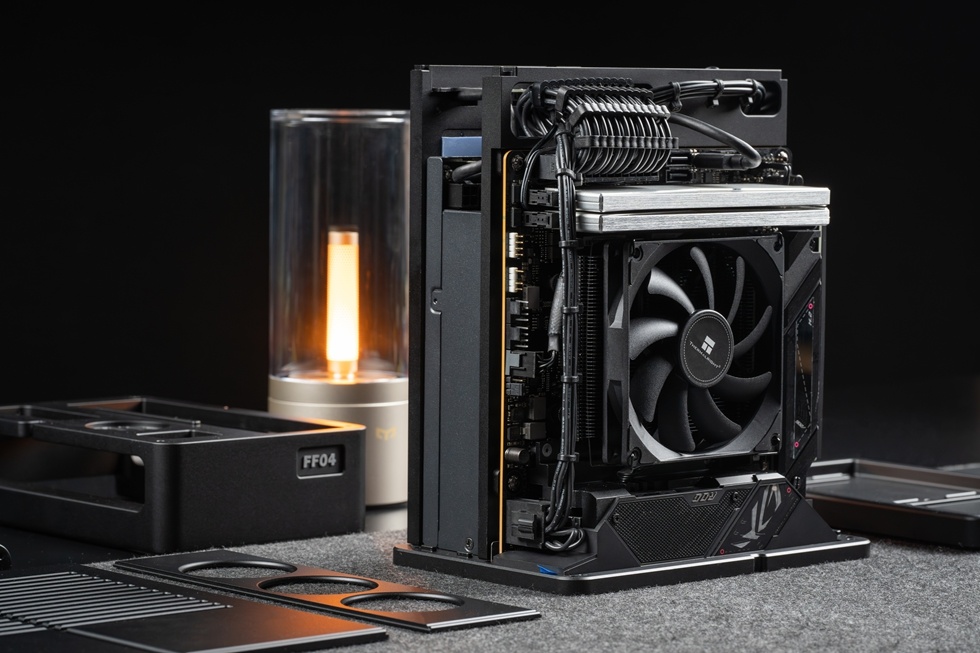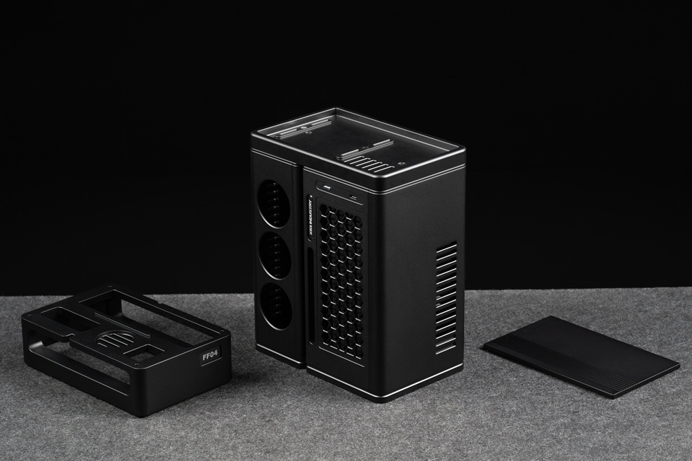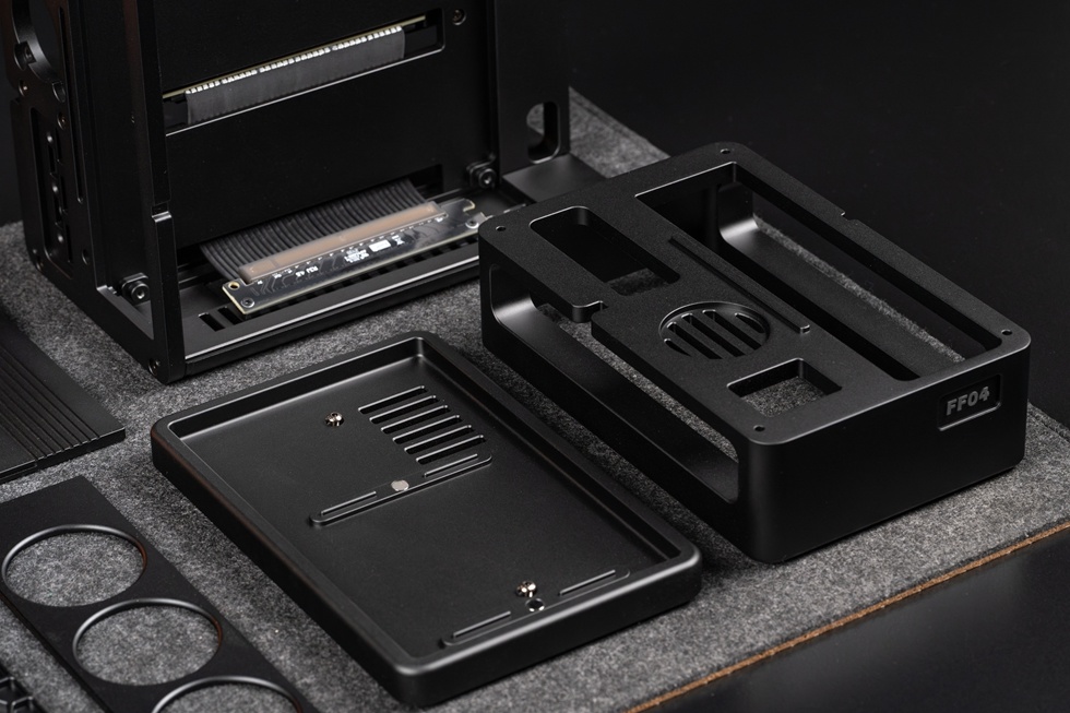 本人對立式機箱非常鍾愛,所以入手了立裝版本的FF04 LP,可見底座用料非常誇張,一整塊鋁坨坨CNC而成。