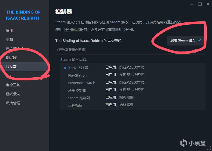 在一些遊戲裏面不能更改手柄鍵位或者不支持手柄,導致操作很難受,這個時候只需要右鍵遊戲,點擊“屬性”,點擊“控制器”,再啓動“Steam輸入”,再點擊“控制器配置器”,裏面就能設置手柄啦
