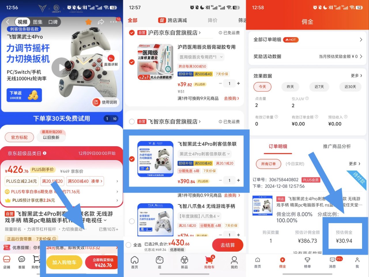 最後,在商品頁面下單或者加購都可以(lz這裏選擇湊單再疊優惠)→下單購買後,返回京粉查看明細即可發現30元返利(這裏可以360拿下544黑旗)