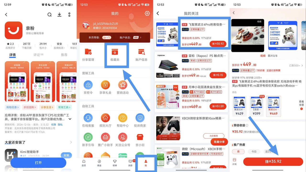 首先京東收藏需要的商品(不要加購)→接着打開京粉收藏夾,點擊想要賺取返利