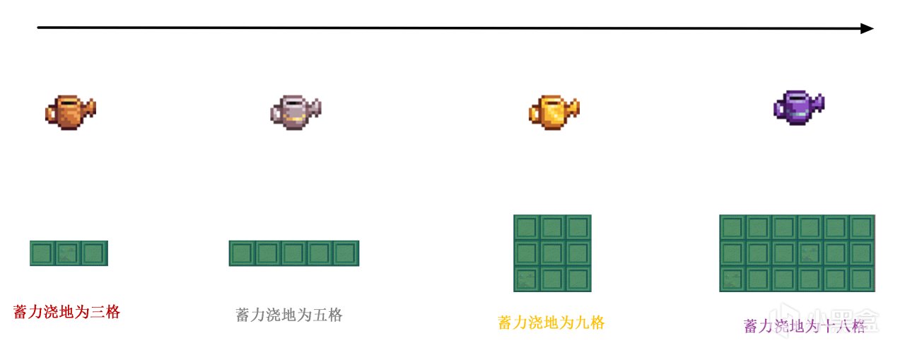 ②噴壺升級後會蓄力會擴大灌溉範圍,同時會提升水壺容量以及減少體力消耗。