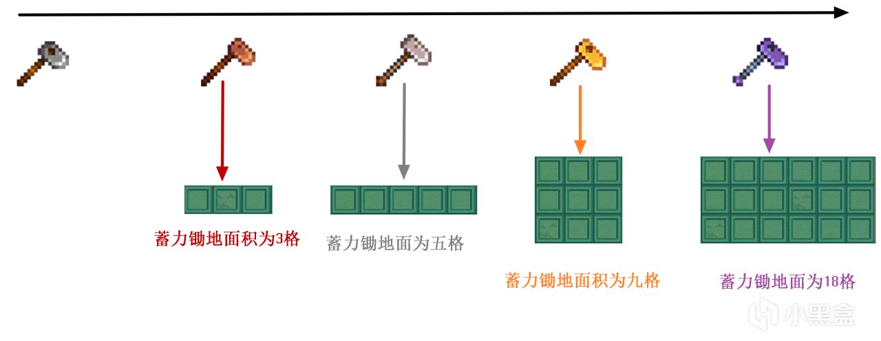 ①升級後的鋤頭蓄力長按可以增加開墾面積。