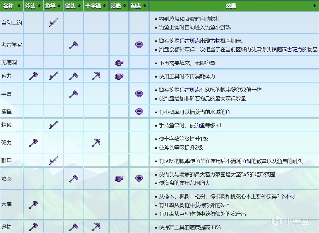 ②銥鐮刀需要耕種精通後前往在精通山洞獲得,銥鐮刀作用範圍更大而且可以直接收割作物。
