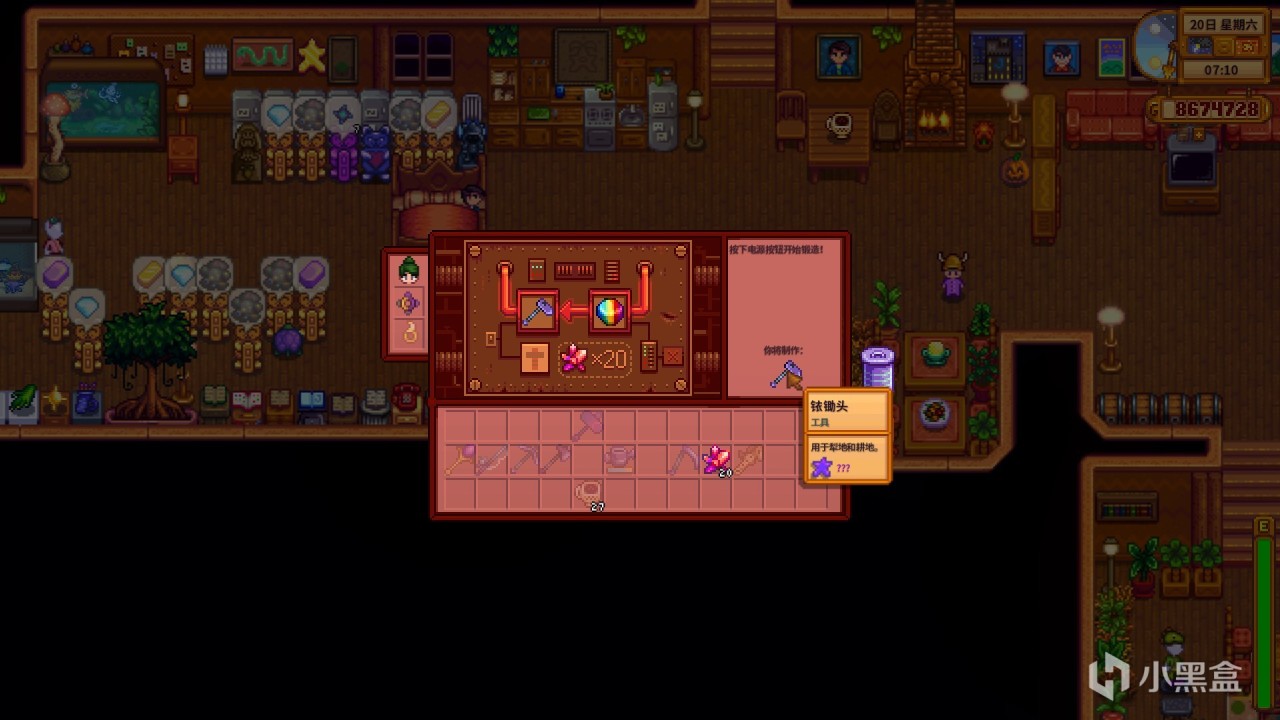 ①我們能在鐵匠鋪提升工具等級(鋤頭,稿子,斧頭,水壺,陶盤和垃圾桶)