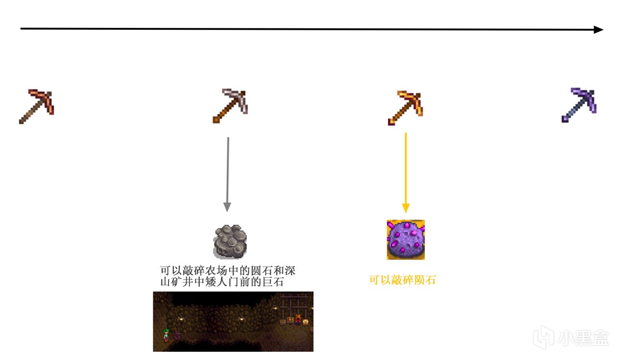 ③十字鎬升級可以減少開採礦石的次數,隨着等級的升級可以開採物品會增加。
