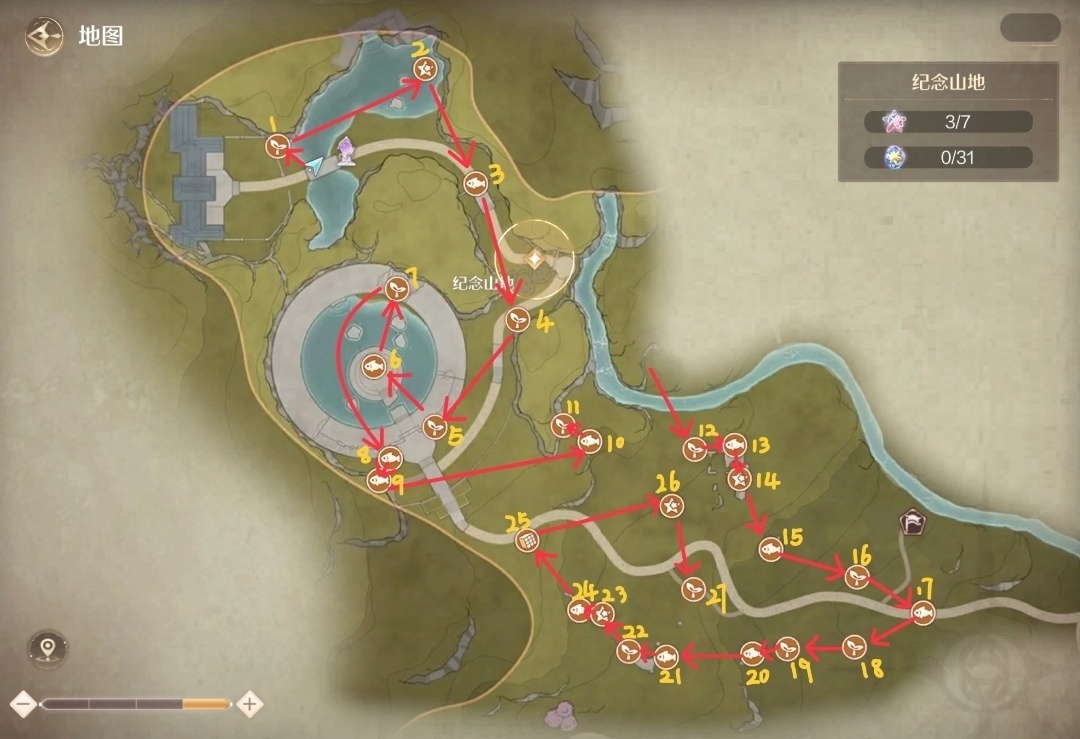 紀念山地全收集路線(主線有三顆奇想星):