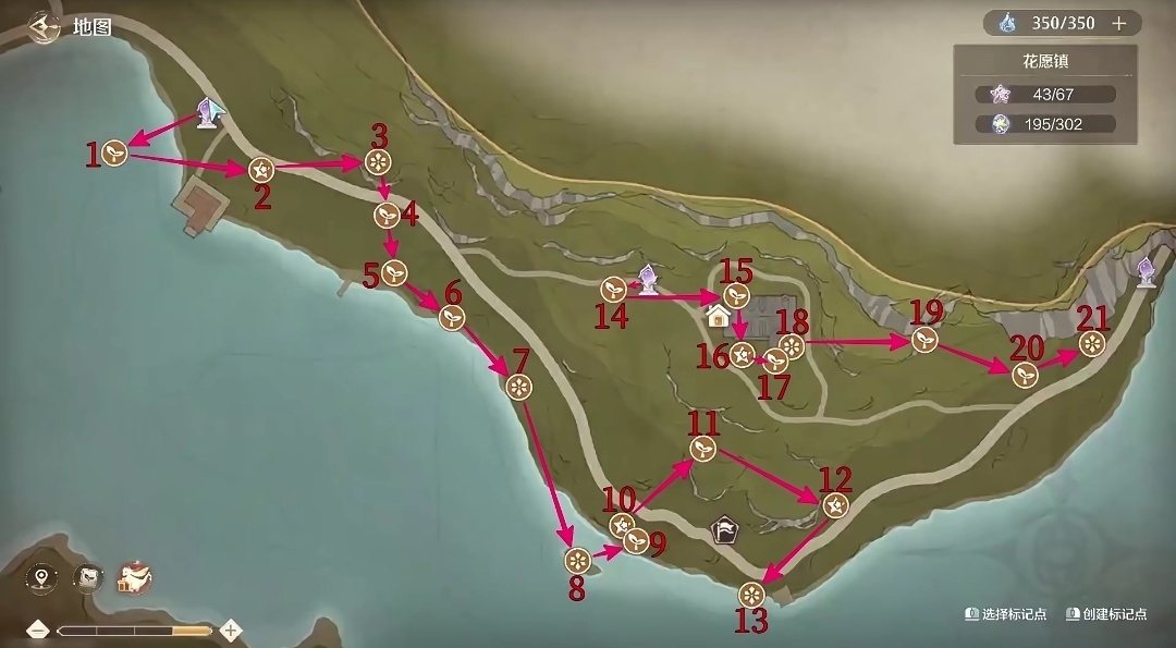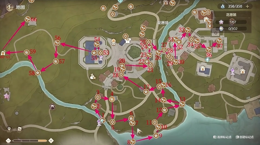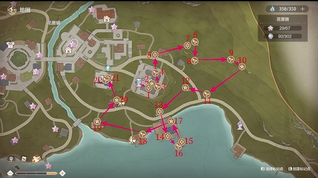 花園鎮全收集路線圖(主線一顆奇想星,八顆需要去購買):